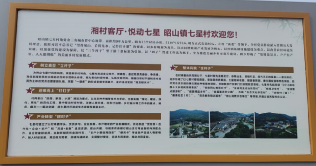 在村级组织活动广场,组织员刘俊同志认真宣读了竖立在广场上有关七星村的材料,在场的党员同志们深刻学习并认真领会七星村乡村振兴的规划理念——树立典型“立杆子”、迎难而上“钉钉子”、产业转型“搭对子”、整体风貌“变样子”。测绘地信教工党支部陈新保书记宣读村干部的“三牛四干”型十条标准。七星村以“四子”党建工作法为抓手,以七星伴岳“先锋之星、农旅之星、生态之星、平安之星、文明之星、创业之星和清风之星”之作为目标考核,全力推进七星村进入“处处是景点,户户有产业,人人能增收”的美丽乡村。同行的党员同志们纷纷点赞七星村的乡村振兴建设取得的成果,党建工作之规范和创新,纷纷表示要认真学习七星村党建引领乡村振兴的工作理念和精髓。