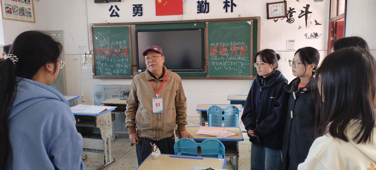 ▲日韩无码 校级督导谷新建教授与地理科学教育实习队学生交流